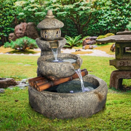 Put the finishing touch on a peaceful, meditative oasis in your garden with the cascading water music of this traditional, Asian-inspired fountain. Water gently spirals downward emanating from a Asian pagoda to two stone bowls lit by included low-voltage LED lights and balanced atop a bamboo ledge. It can be placed indoors or out and constantly recycles water from the lower reservoir bowl. Cast in quality designer resin and hand-finished for Design Toscano, this investment in garden art features an integrated, UL-listed, indoor/outdoor pump. 24½"Wx21"Dx25½"H. 28 lbs.