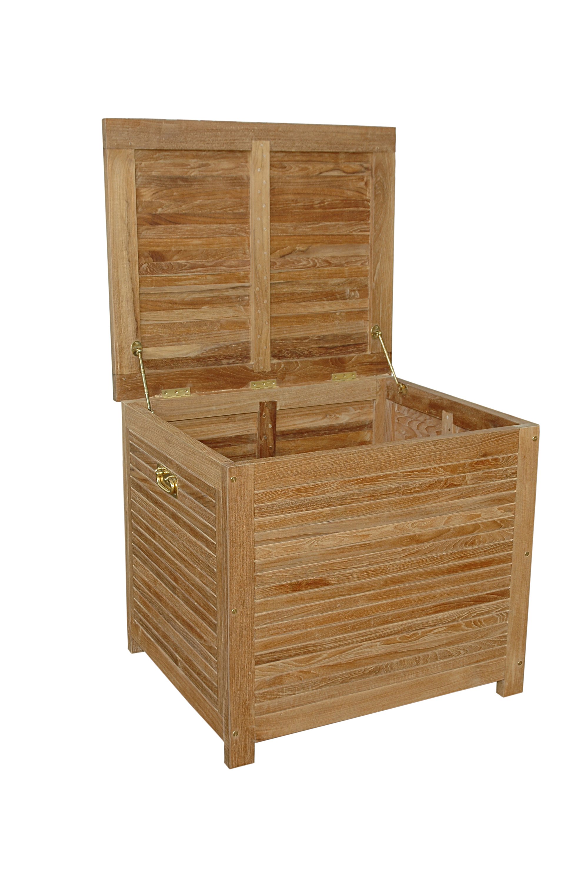 The Camrose Small Storage Box is a stylish way to store items for your backyard, deck, or pool area. It is the perfect accessory to place your outdoor furniture cushions, towels, sports equipment or pool equipment. This Camrose Storage Box can also be used to compliment any room in your home for additional storage such as a children’s toy box or laundry box. Made from All Premium Unfinished Teak wood, it is designed to withstand the weathering sun, rain or hail of the outdoors. Also available in a larger option size, the Camrose Large Storage Box by Anderson Teak.